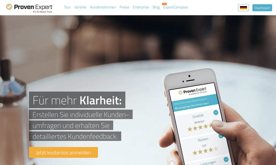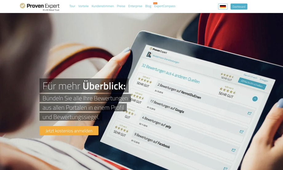 - Proven Expert ist eine leistungsstarke Plattform, die es dir ermöglicht, Bewertungen zu sammeln, zu verwalten und auf deiner Webseite zu präsentieren.